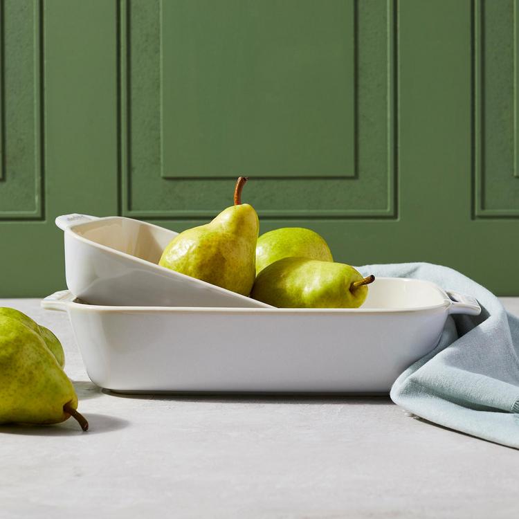 The elegance and functionality of Staub means that this ceramic Baking Dish Set moves seamlessly from freezer to oven to table. The glass porcelain finish on this baking dish set matches Staub's classic cast iron cookware, so you can blend or mix the set perfectly on your tabletop.