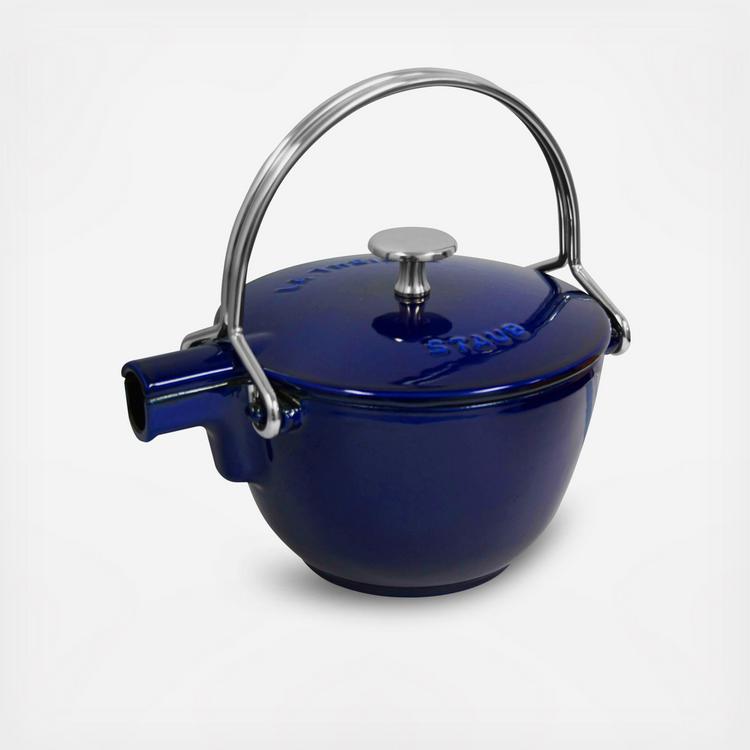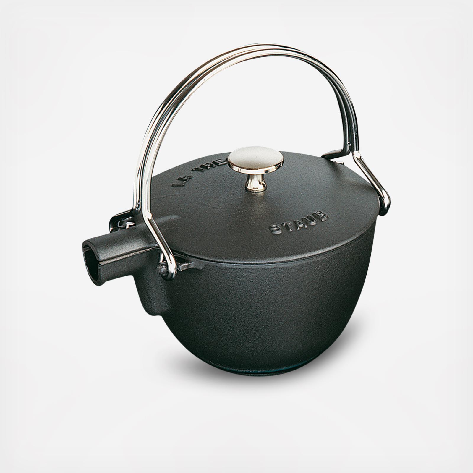 An instant conversation piece! Just right for tea, hot water, soup, and other one-pot classics, Staub's innovative 1 qt. tea kettle is a multi-functional wonder for today's contemporary kitchen. With the even heat distribution and heat retention that only enameled cast iron can offer, contents stay hotter longer, plus the kettle is highly chip-resistant and resists discoloration.