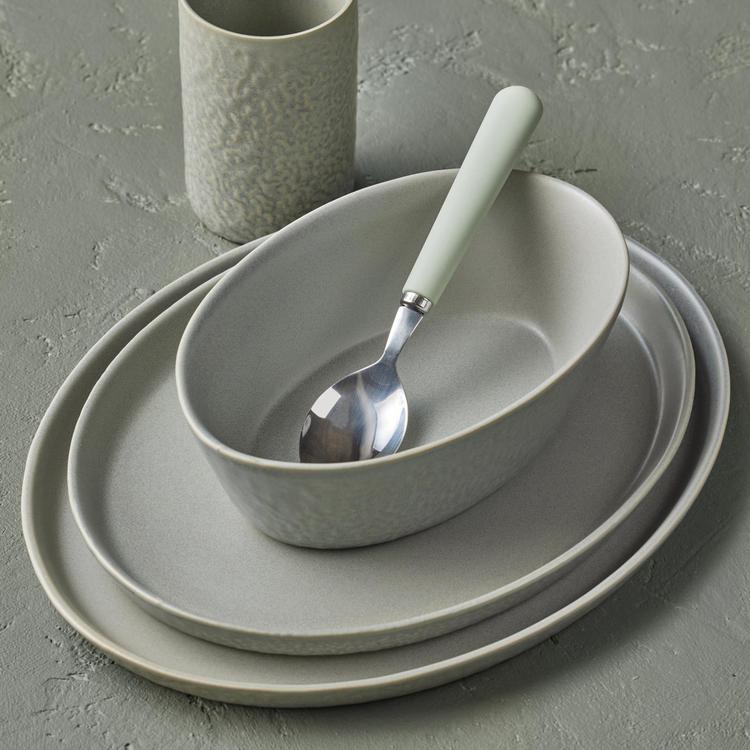 Stone by Mercer Project KATACHI Collection is a stoneware dinnerware set. The colorful glaze highlights the outside texture and shape of each dish to give an unique and aesthetically look. The collection standout for its unusual shape and has stackable plates and bowls for easy storage. Although dishwasher and microwave safe, the pieces will still get hot and should be handle with care. Beautify your table with this designer set and table accessories such as a tablecloth, placemats or chargers to protect the surfaces as the bottom of the parts are unglazed. There can be color variation within the set due to the reactive glaze response to the shape of the component and the firing heat. Come and join the Mercer Project family with this one of kind dinnerware design.