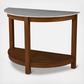 Bring sophisticated simplicity into your entryway with this two-tone console table. A spacious tabletop holds a lamp and fresh flowers, while the open wood shelf displays family photos and decor items. The natural finished base crafts a classic look, complementing most decor. Entertain in elegant style when your place this faux marble top sofa table in your living room or open concept living space.