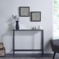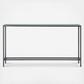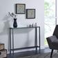 Accent a la modern. This narrow console table elongates any room with its slim features. Metallic gray holds a mirrored tabletop, crafting a functional hub for keys and everyday entryway items. This skinny console table tucks away behind your sofa, complementing your living space. Organization and decoration come together in your space with this gray sofa table.