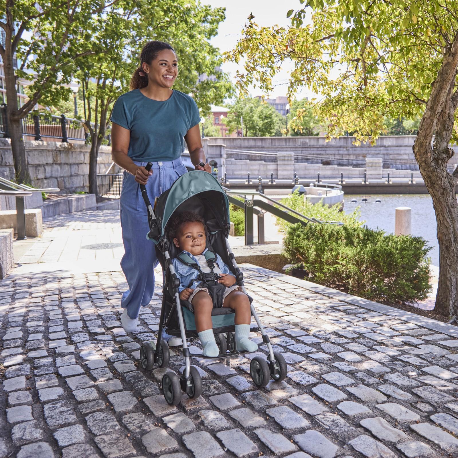 With the Summer 3D Mini Convenience Stroller, you don’t have to sacrifice any features you want in a stroller. It’s mini, but mighty for long-term use and full of premium features for both parents and their little ones. This convenience stroller has a durable, lightweight and stylish aluminum frame that weighs only 11 pounds. With a compact, easy to fold frame, you can be on-the-go running errands or traveling or stow and go with ease. Some of the parent-friendly features included in this lightweight stroller include: 2 cup holders, a storage pouch, storage basket, auto-lock, anti-shock front wheels, lockable rear wheels and more. The comfort features for baby include: a full-sized seat, multi-position recline & padded seat back, hassle-free canopy with pop out sun visor, padded 5-point safety harness and more.