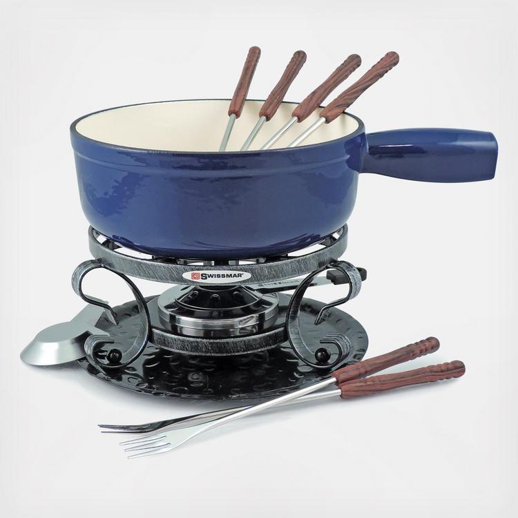 Fondues offer the utmost in versatility. The decor saavy color makes them ideal for meat, cheese and chocolate fondue. Pots provide even heat distribution, making them ideal for cooking at both high and low temperatutures without hot spots. Use the pot on other heat sources and in the oven. Recipe card and instructions for making a fun evening with friends and family.