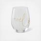 Sentiment Noel stemless beverage glass, adds a touch of gold verbaige adds a little glitz to your holiday table.