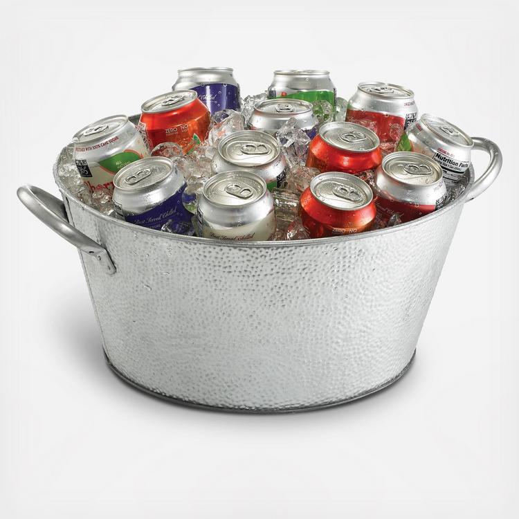 Serve your favorite cold beverages in style with TableCraft's Galvanized Collection™ Round Beverage Tub. The tub holds approximately 45 standard cans, while the handles make transporting easy.