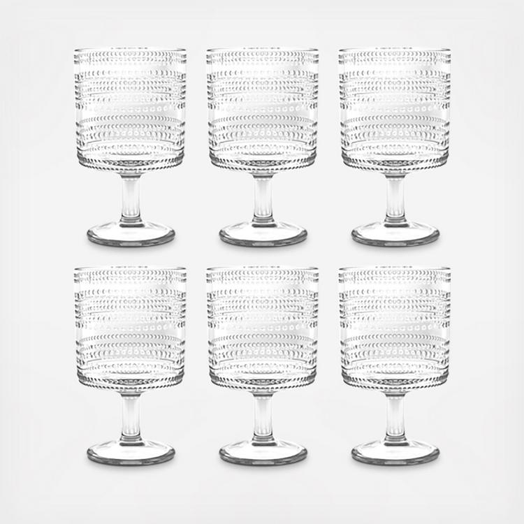Textural and trendy is the BEADED beverageware, with its rows and rows of raised dots. Available in clear, cobalt blue, and sea green to coordinate with a variety of our dinnerware collections.