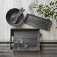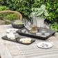 Gather around this faux wood melamine sever, in a stylish blackened finish, that works witheverything!