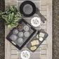 Gather around this faux wood melamine sever, in a stylish blackened finish, that works witheverything!