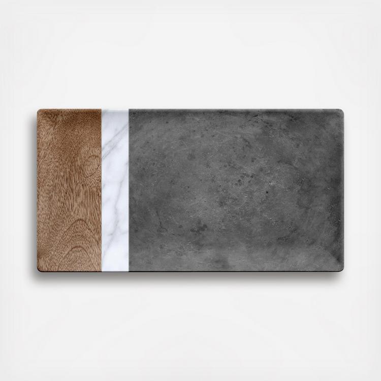 These entertaining pieces are faux real!! The beauty of wood and marble without the fuss. Made of melamine, it mimics the aesthetic of ceramic while being shatterproof, dishwasher safe, and completely durable, which makes it ideal for both indoor and outdoor entertaining.`