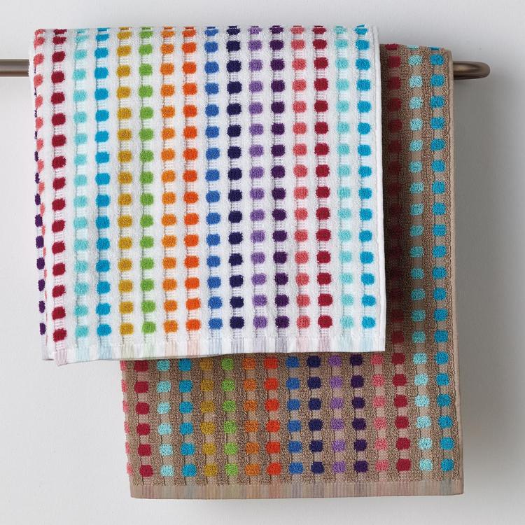 Add some color and texture to your bathroom with our Spectrum bath towel. Featuring more than a dozen colors with a white or taupe background, this soft and absorbent towel will brighten your bath and shower routine.