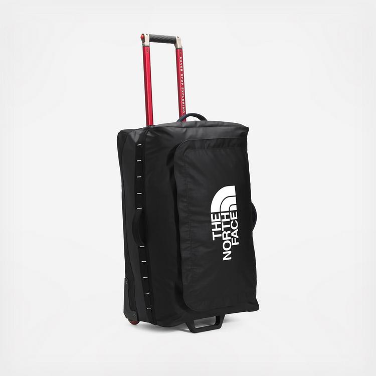 Travel the world with this two-wheel roller that offers plenty of organization in a sleek and lightweight package. Has the same durable yet lightweight recycled nylon ripstop main-shell fabric as our classic Base Camp Voyager duffel. Two smooth-rolling wheels and a comfortable, telescoping, wide handle for comfortable hauling through airports and around town. Rock-solid chassis is built to handle the wear and tear of being transported around the world over and over again. Large central compartment features a zippered divider to organize your belongings. Internal compression straps for securing clothes and other items. Large internal mesh pocket for organization. One bottom and two side handles offer multiple carrying options. External, secure-zip pocket offers quick access to items such as a passport, phone, wallet or keys.