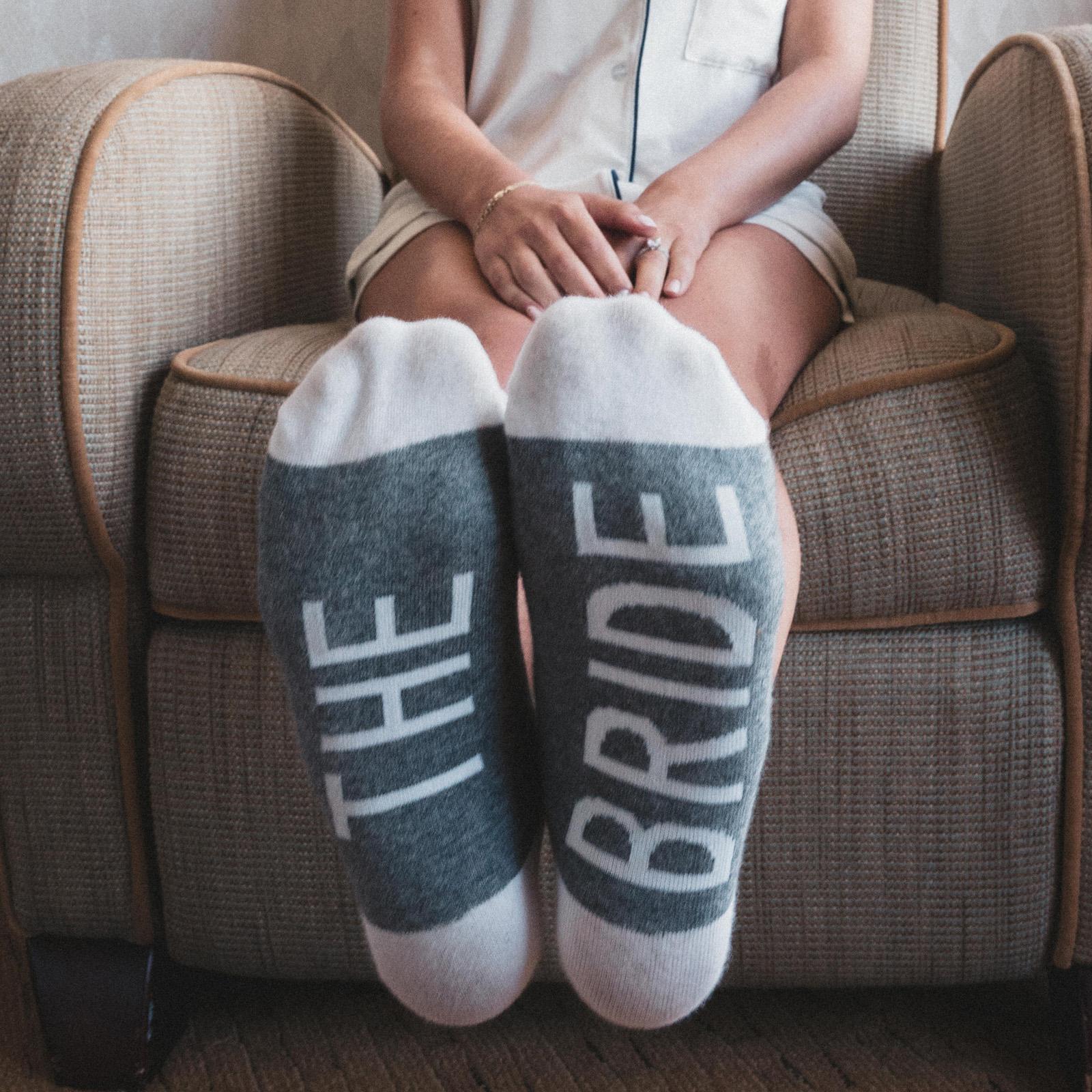 These Bride socks are a picture perfect addition to your Getting Ready attire! Kick your feet up alongside your Bridal Party and prepare for an Instagram-worthy shot! Socks make an adorable and affordable gift for the Bride to wear on her wedding day.