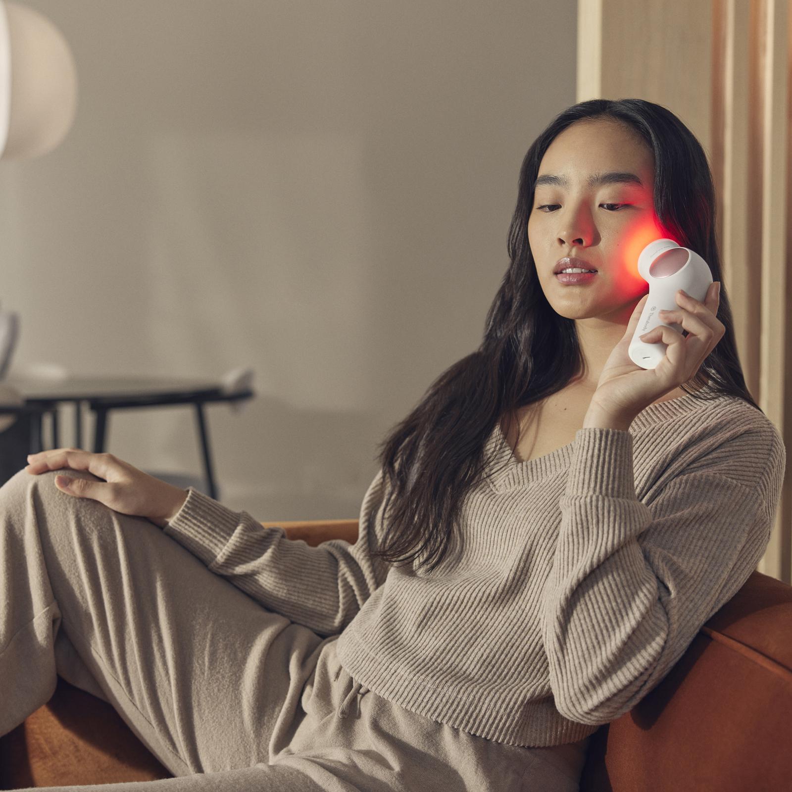 TheraFace PRO™ The Ultimate Device for Facial Health. The TheraFace PRO is your all-in-one solution for optimal facial health. TheraFace PRO goes where no facial device has gone before, bringing Therabody’s renowned technology behind percussive therapy to the face to reduce tension, relax facial muscles, and care for it at the deepest level. Offering more science-backed facial therapies than any other —the TheraFace PRO also features skin-toning microcurrent therapy , rejuvenating light therapy and a revolutionary new way to more deeply cleanse the face. And because every face is unique, we engineered the most personalized experience possible with an easy-glide magnetic ring system that allows you to seamlessly switch between, and even combine, treatments. As your needs change, the TheraFace PRO changes with you. It’s time to go beyond beauty, because true facial health is more than skin deep.