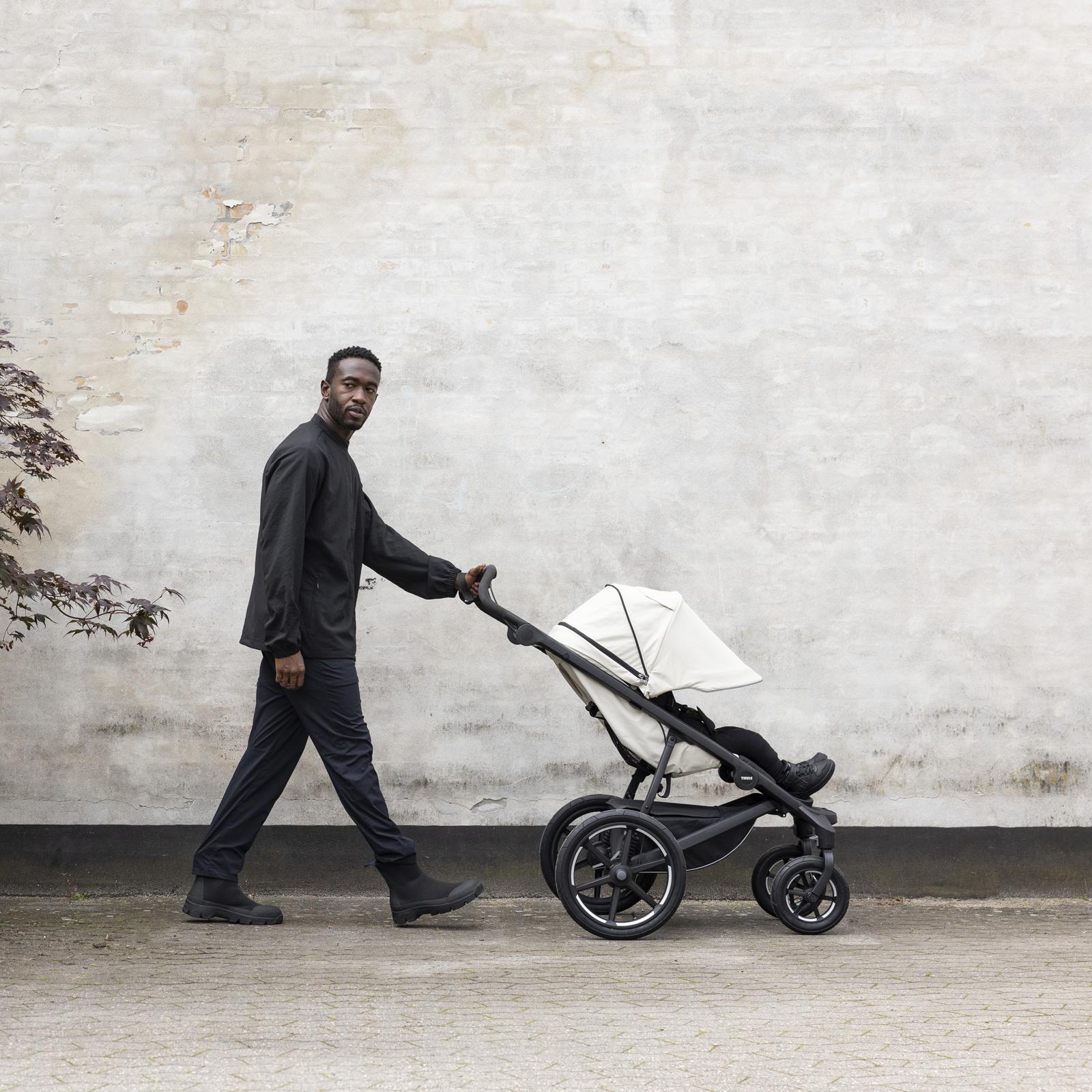 The all-terrain stroller black. Thule Urban Glide 4-wheel is a city-friendly, all-terrain stroller that's perfect for newborns and toddlers. As the ultimate full-size urban stroller, it seamlessly blends comfort, functionality, generous storage capacity, and performance on any surface. Designed for everyday use, it allows for unparalleled maneuverability. Glide through tight corners and crowded spaces, whether you're strolling city streets or conquering rough terrain. Thule Urban Glide 4-wheel is a city-friendly, all-terrain stroller that's perfect for newborns and toddlers. As the ultimate full-size urban stroller, it seamlessly blends comfort, functionality, generous storage capacity, and performance on any surface. Designed for everyday use, it allows for unparalleled maneuverability. Glide through tight corners and crowded spaces, whether you're strolling city streets or conquering rough terrain. Experience the superior suspension provided by the air-filled tires, which provide a smooth ride even over high city curbs or woodsy paths. From paved city streets to the rugged outdoors, the Thule Urban Glide 4-wheel is designed to adapt and perform. The twist hand brake gives you smooth speed control on any terrain, and the one-handed, compact fold makes storage and transportation easy for active parents. With an enhanced cargo capacity that can hold up to 10 kg. Thule Urban Glide 4-wheel provides ample space to stow away all your essentials and more. From diaper bags and groceries to shopping bags and personal items, you have the freedom to bring along everything you need for your adventures.