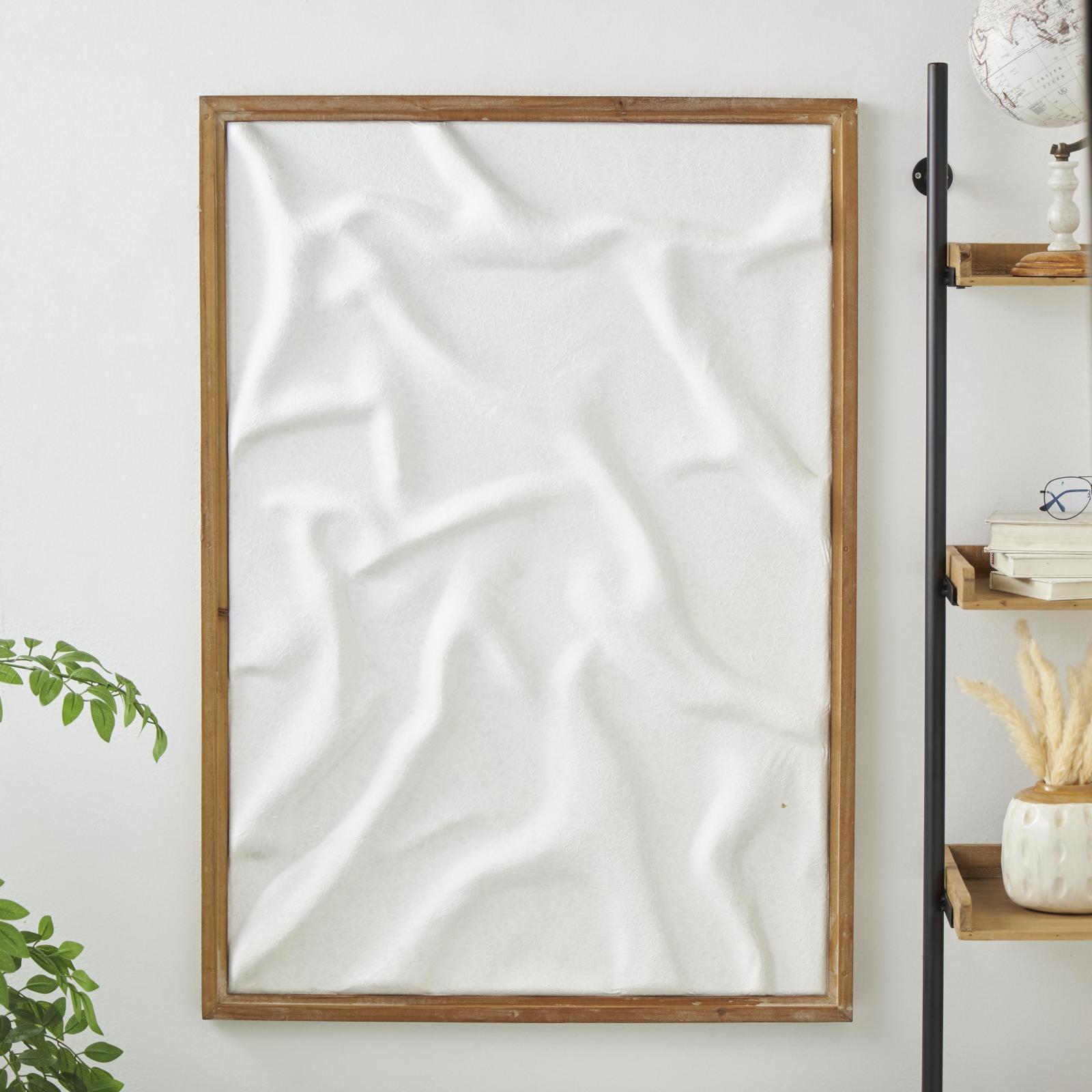 This Abstract Dimensional Shaped Framed Wall Art with Wooden Frame can be seamlessly incorporated into various spaces in your home such as the living room, bedroom, or hallway. This item ships in 1 carton. Can be hung vertically using the d-rings; nails and screws not included. Suitable for indoor use only. This item ships fully assembled in one piece. This is a single white colored canvas wall art. Natural style.