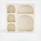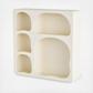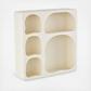 Sandstone cream room floating shelf has a square shape that complements its arched and abstract shelves, adding depth and dimension to the overall look.