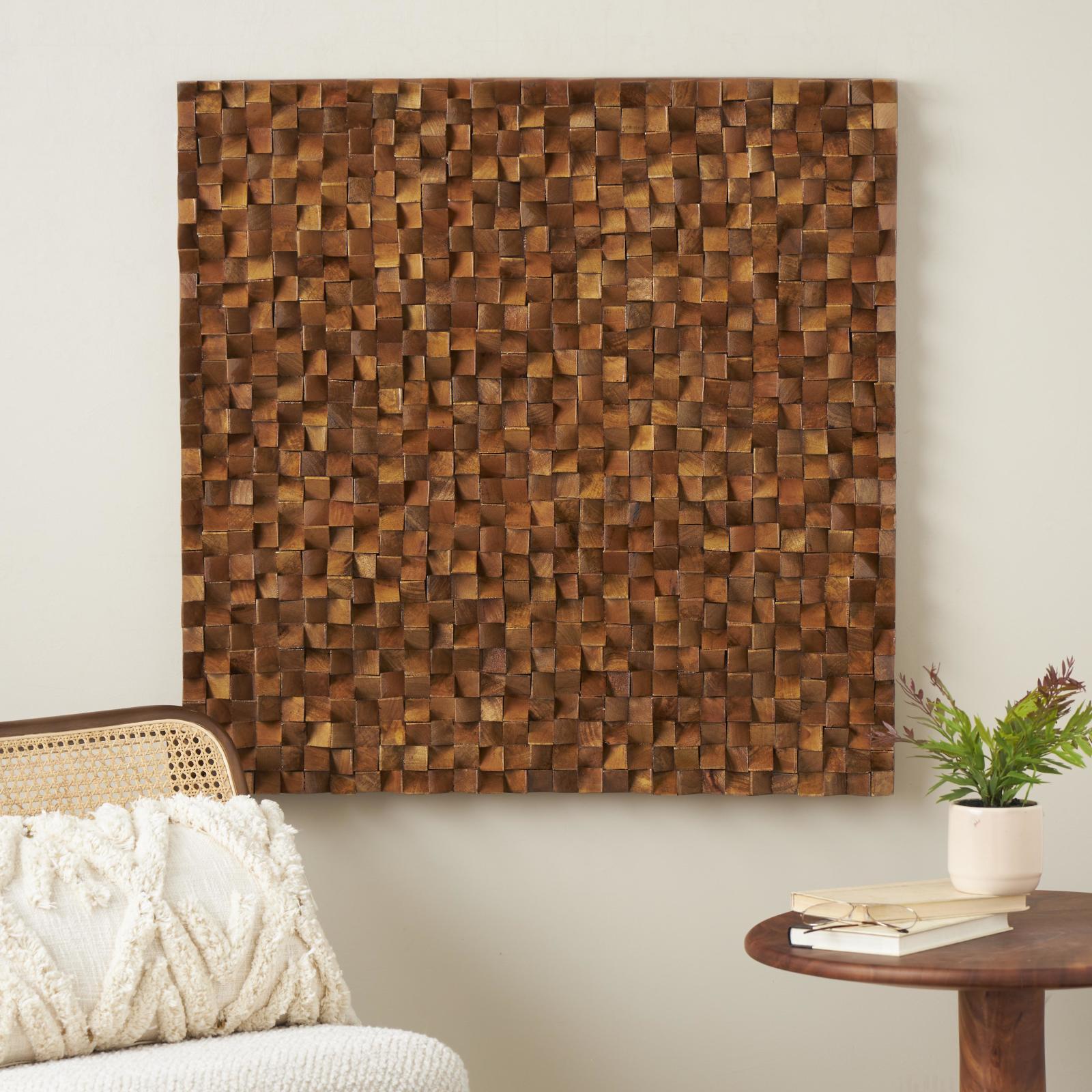 Hang this geometric wall sculpture on any interior wall in your living room or bedroom to instantly infuse a touch of rustic elegance and artistic flair into your surroundings. This item ships in 1 carton. Due to the handmade nature of this item, no two will be alike, there will be slight differences in shape, size, and color. Can be hung vertically using the keyholes; nails and screws not included. Suitable for indoor use only. This item ships fully assembled in one piece. This is a single brown colored wall sculptures. Rustic style.