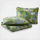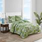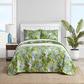 The Aregada Dock quilt was inspired by a tropical oasis. This Aregada Dock quilt features a green palm leaf design. This quilt is lightweight and easy to layer. The shams feature a two piece back closure. The corners of the quilt are rounded to match the sham, both edges are finished with a fabric binding. This quilt set is fully reversible.