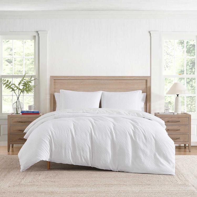 Enhance your space with The timeless sophistication of Tommy Hilfiger's monogram matelasse duvet sham set. The intricate texture of This set is created by The subtle use of The Th logo, seamlessly blending signature design with a classic, clean style. The cotton matelasse texture offers an iconic, yet elevated feel, adding depTh and style to your bedroom. Perfectly paired with Tommy Hilfiger's sheets and blankets for a seamless, layered look, This breathable, medium-weight cotton set provides comfort and style.