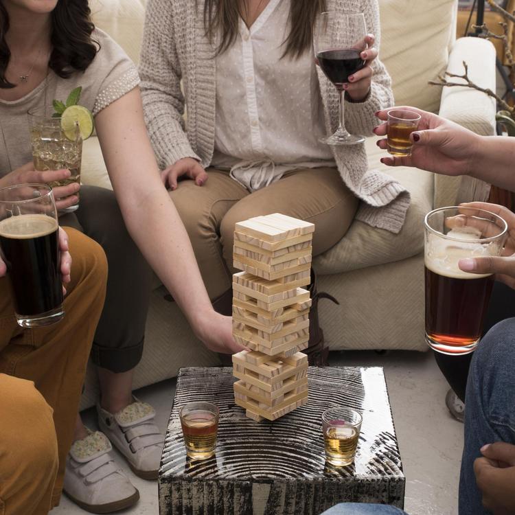 Build the party and break it down again with this adult twist on the classic block stacking group game. Each block is stamped with written instructions so you never have to question the rules after a few rounds. With four shot glasses included, this Stack™ Drinking Game will have everything you need to get the party started.