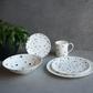 A classic design from Italian tile works finds its way in the Terrazzo Azzurro collection. With colored flakes in various shades, it feels as though pieces of stone have been mixed into the plate, creating a visually interesting background for your food and drink. Born in the era of Art-Deco. Terrazzo now finds a new life in high quality Chinaware.
