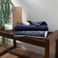 These towels are designed with Japanese ingenuity to craft an amazing towel that combines the best of two technologies into one: the fast-acting absorption of the air waffle on one side, reversing to a double pile construction of soft comfort. It’s 100% cotton, lightweight, and extremely absorbent.