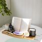 Unwind in style with the Aquala Expandable Bathtub Caddy. Its built-in wine glass holder and fold-away book support makes your bath as relaxing as can be. Made from bamboo, a highly renewable resource, this caddy is the ultimate accessory for rest and relaxation.