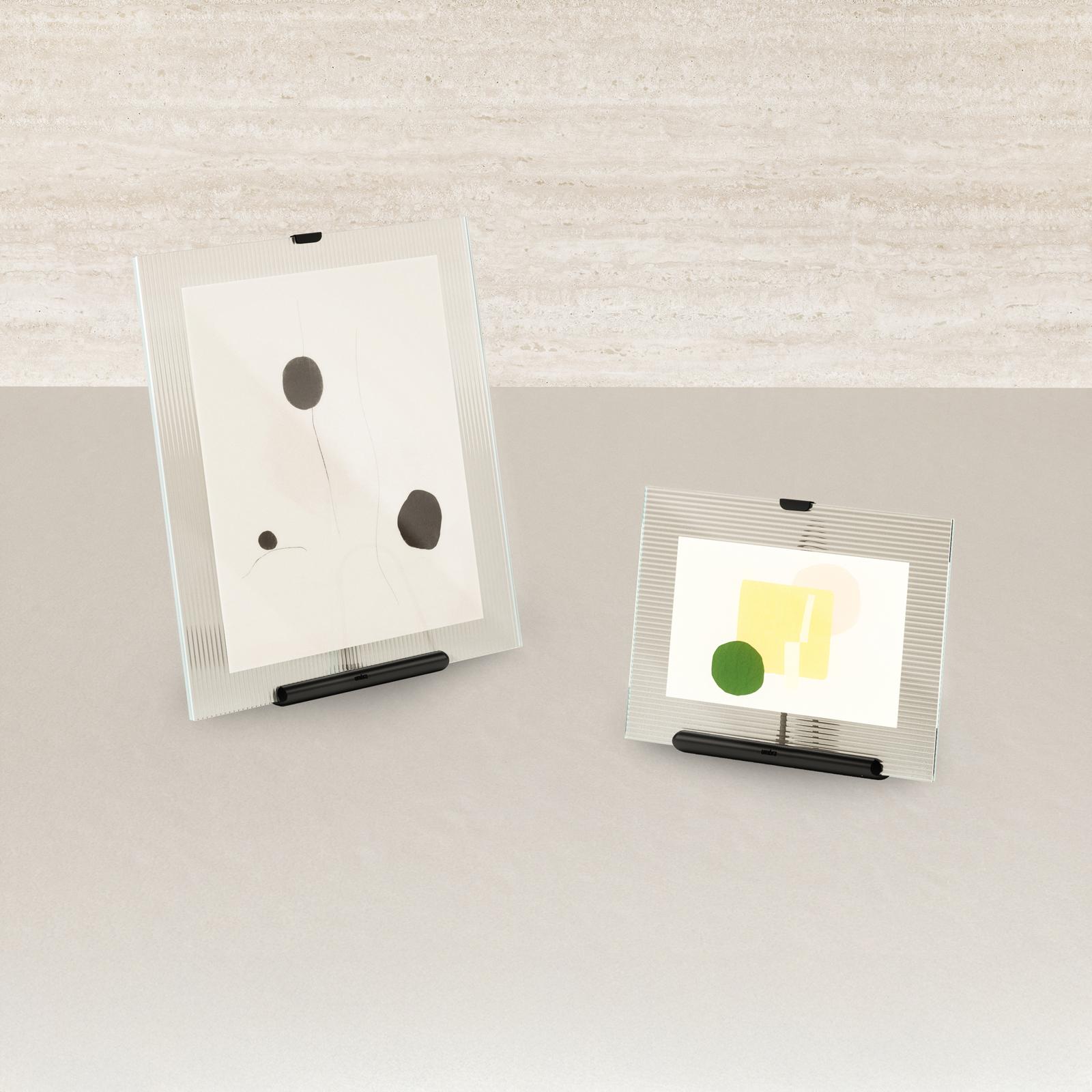 Introducing the Umbra Flute Picture Frame, a stylish addition to your home decor. With its decorative easel design, this frame effortlessly showcases your cherished memories. Its versatile design (accommodates both 4x6, 5x7 or 8x10 in.) photos, while the ribbed glass texture adds an elegant touch. Plus, enjoy the freedom to display your photos in either landscape or portrait orientation. Capture and display your favorite moments with flair using the Umbra Flute Picture Frame.