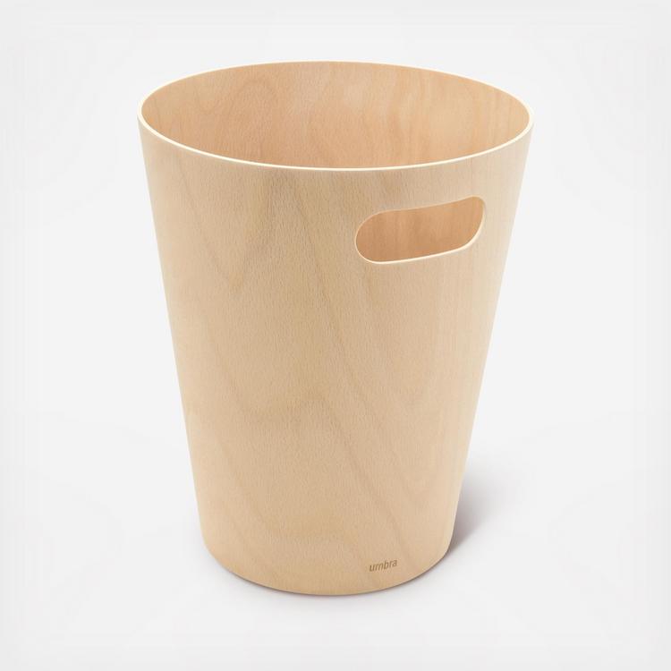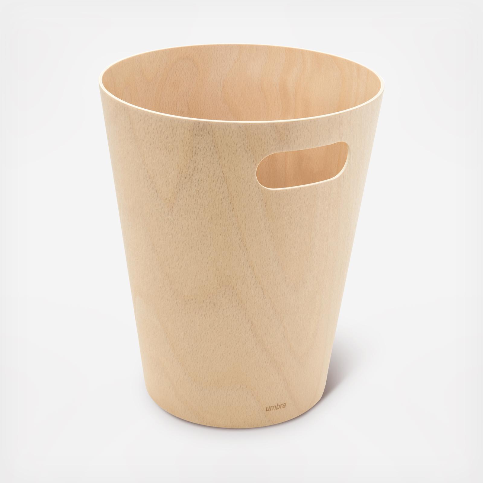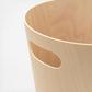 Introducing Woodrow, a stylish waste can that brings a modern vibe to any room. Its two-tone design, this can combines a natural wood interior with a stained finish on the outside, creating a cozy and grounded atmosphere. It's super easy to move around thanks to the integrated handles, making disposal a breeze. Plus, the unique curved shape turns a regular household item into a standout decor piece. Woodrow is perfect for compact spaces like powder rooms, offices, or studies. Upgrade your space with this eye-catching trash can! Sourced from renewable wood sources.