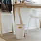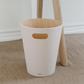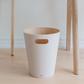 Introducing Woodrow, a stylish waste can that brings a modern vibe to any room. Its two-tone design, this can combines a natural wood interior with a stained finish on the outside, creating a cozy and grounded atmosphere. It's super easy to move around thanks to the integrated handles, making disposal a breeze. Plus, the unique curved shape turns a regular household item into a standout decor piece. Woodrow is perfect for compact spaces like powder rooms, offices, or studies. Upgrade your space with this eye-catching trash can! Sourced from renewable wood sources.