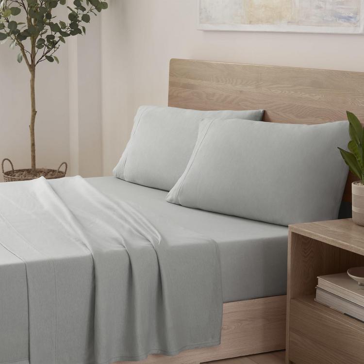 The Vellux Snuggle 4-Piece Sheet Set is a sure way to start your bedtime routine. Made of breathable, smooth jersey, it is perfect for those who take their napping and sleeping seriously. The supersoft, easy-care fabric in serene sage adds a touch of casual sophistication to your bedroom decor.