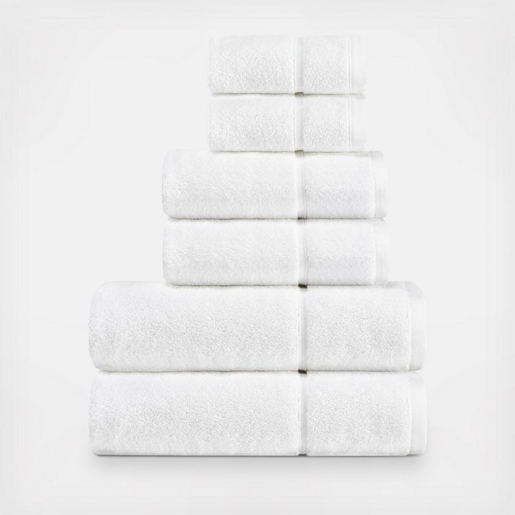 Wrap yourself in comfort with the Vera Wang modern lux 6 piece towel set. Available in gorgeous solid palette, this towel set will coordinate perfectly with any bathroom décor. The high quality cotton construction will seamlessly bring luxury and style to your home.