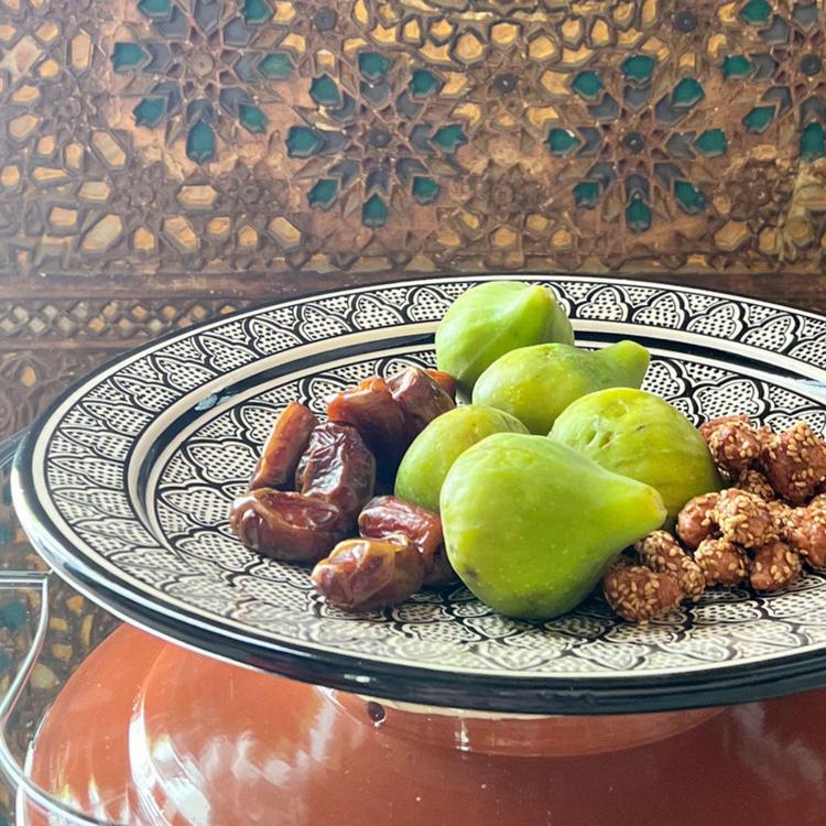 Embrace the enchantment of Moroccan traditions and elevate your dining experiences with the grace and beauty of our Moroccan Painted Ceramic Platter. Its intricate, geometric arabesques are hand-painted to evoke the enchanting essence of Morocco. Traditionally uses as a couscous platter, the spacious design of this ceramic piece can also double as a stunning serving platter for other dishes. Use it to showcase appetizers, fruits, pastries or as a captivating centerpiece for your table. Handmade and handpainted by ceramic artisans in Safi, Morocco.