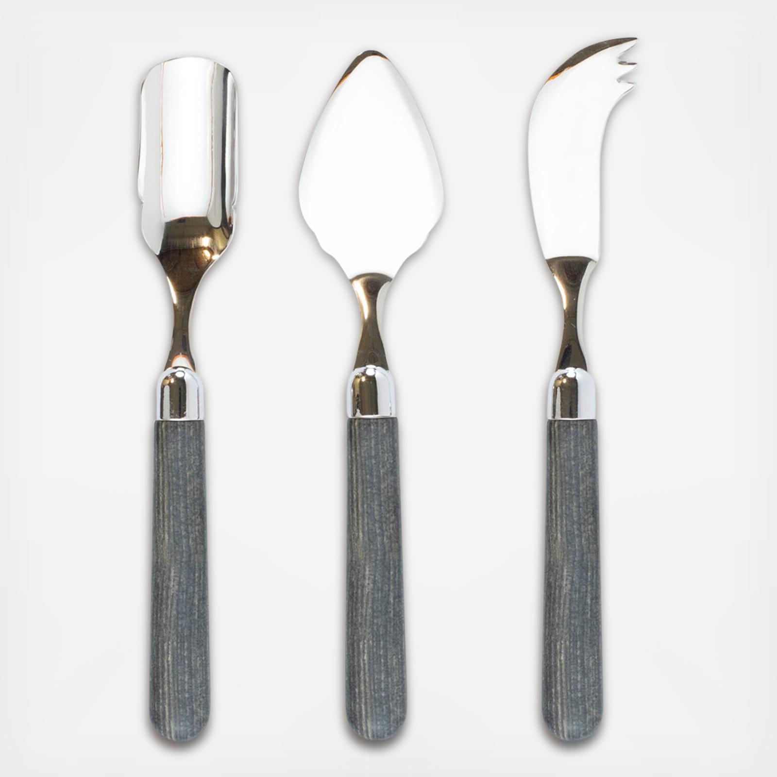 The Albero Cheese Knife Set features warm wood handles, with the strength of high-grade polyester and 18/10 stainless steel.