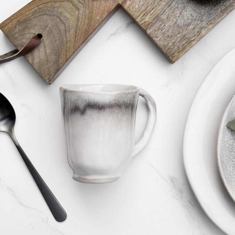 Highlighting the skill and craftsmanship of maestro artisan, Francesco Venzo, the Aurora Mug adds intrigue to everyday dining. Splatters of white and charcoal intermingled on durable stoneware inevitably add subtle chicness to any tablescape.