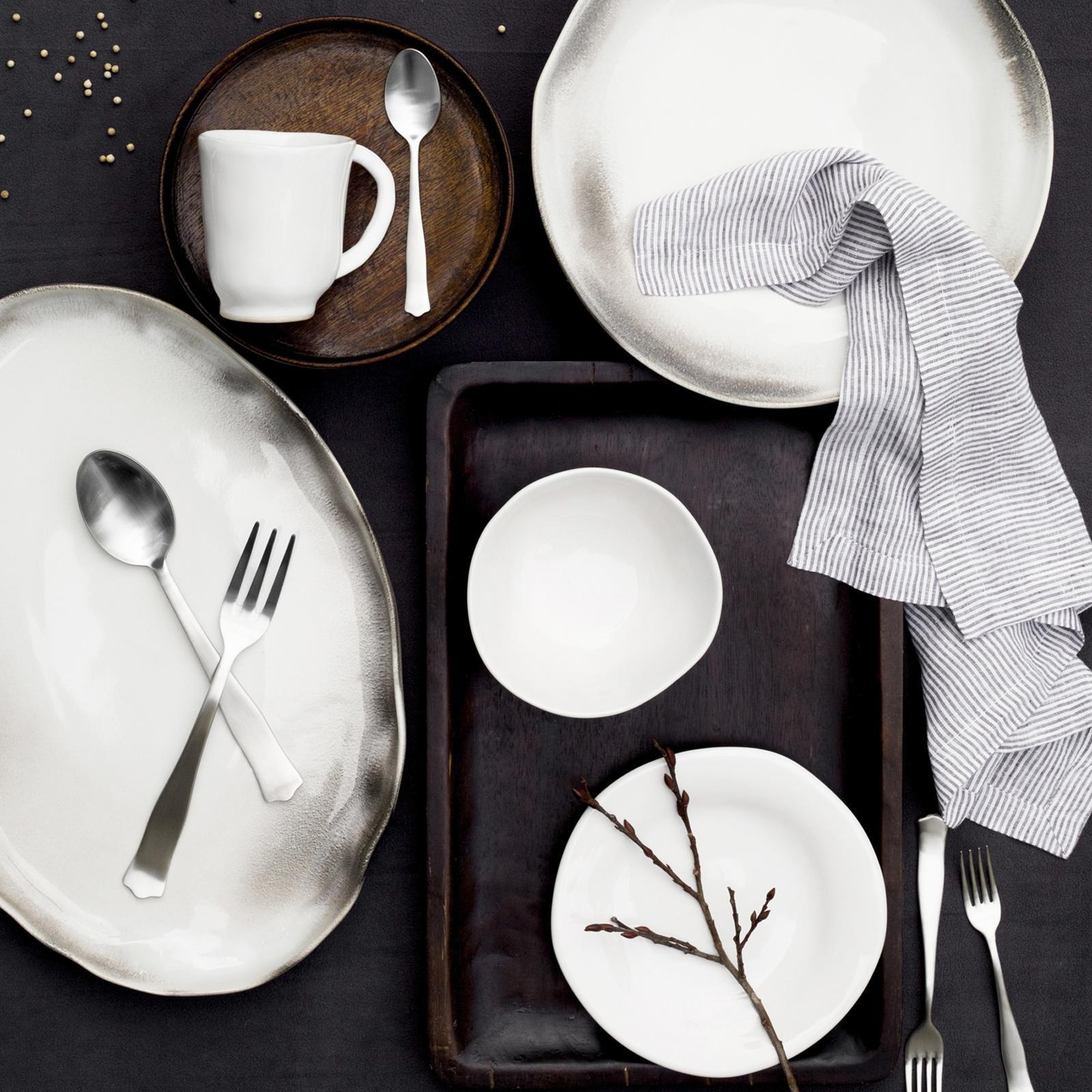 The Aurora Large Oval Platter is handformed from the strongest stoneware in Veneto, Italy. With authentic, unique edges and its ample, easy shape, this serving piece makes a simple and sophisticated statement.