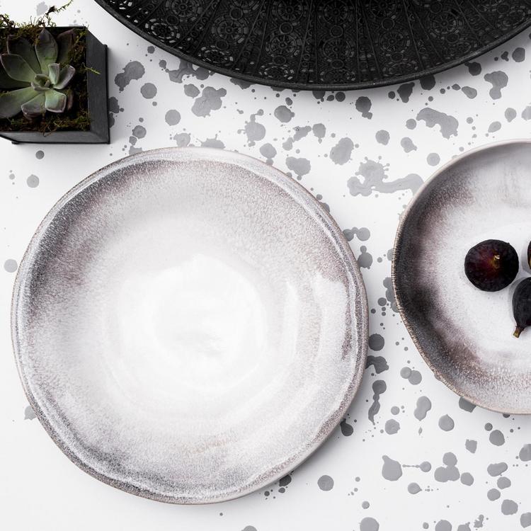Highlighting the skill and craftsmanship of maestro artisan, Francesco Venzo, the Aurora Salad Plate adds intrigue to everyday dining. Splatters of white and charcoal intermingled on durable stoneware inevitably add subtle chicness to any tablescape.
