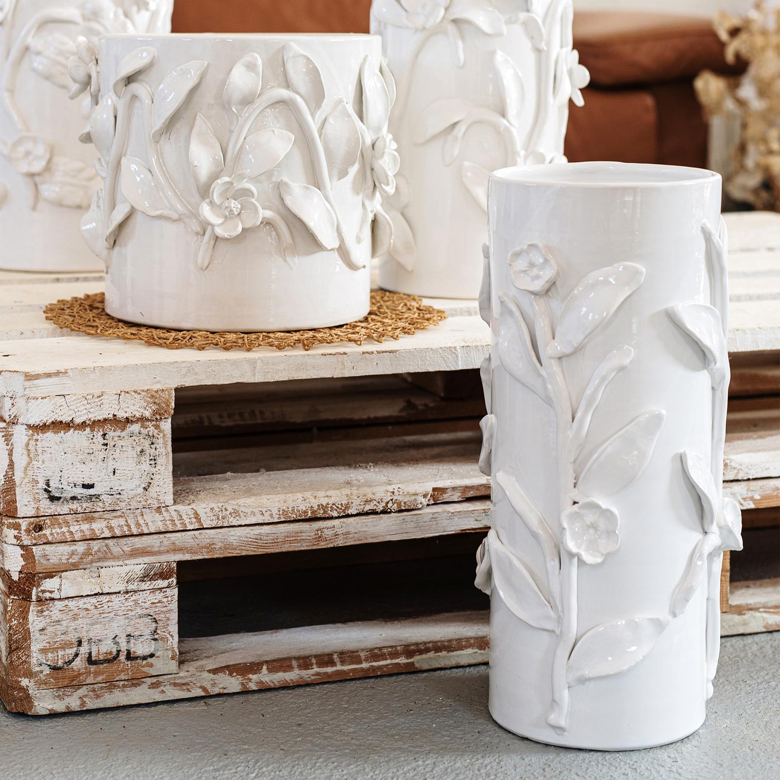 Inspired by the cascading, abundant Bougainvillea vines found all throughout Italy, the Bougainvillea Garden White Tall Cachepot is a true work of art, featuring handsculpted leaves, vines, and blooms.