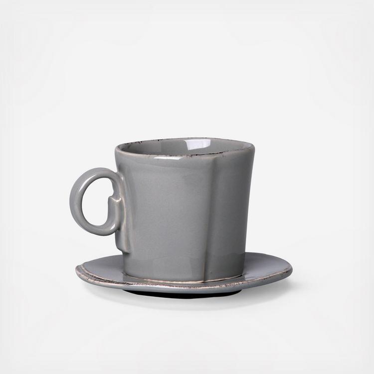 The Lastra Espresso Cup & Saucer is rustic, chic, and endlessly charming. An overlapping wooden mold, used for centuries to form cheeses throughout Italy, inspired this handmade espresso cup set.