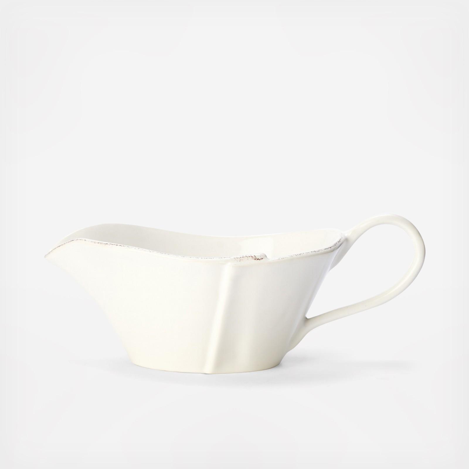 Beloved for its sophisticated simplicity, versatility, and durability, Lastra is our bestselling collection. The understated elegance, clean lines, and unique shape of the Lastra White Sauce Server make it a timeless serving piece for your home. Lastra’s design was inspired by the circular wooden slabs used for centuries to create the outer mold in cheesemaking throughout Italy. When fashioned together with twine, the hoop was left with a slight overlap to help maintain the shape of the cheese mold. Maestro molder Stefano Roselli incorporates the overlapping detail into the entire design, from its foot to its rim. A dark dusting on the edges of each piece suggests the ash that was used to preserve these cheeses and highlights each unique silhouette.