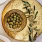 Taking inspiration from the traditional technique used by Italians to make picture frames, the Moon Glass Olive Small Bowl features graceful olive vines on a warm, golden background.