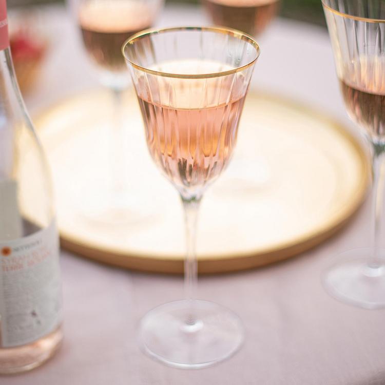 Classic and celebratory, Natalia Gold Water Glass features a resplendent golden rim atop a glass reminiscent of cut crystal.