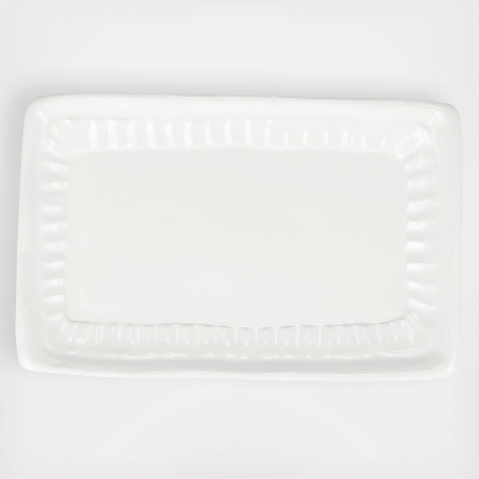 Pietra Serena, meaning serene stone, represents the simplistic beauty of the handpressed design found on the Pietra Serena Rectangular Tray.