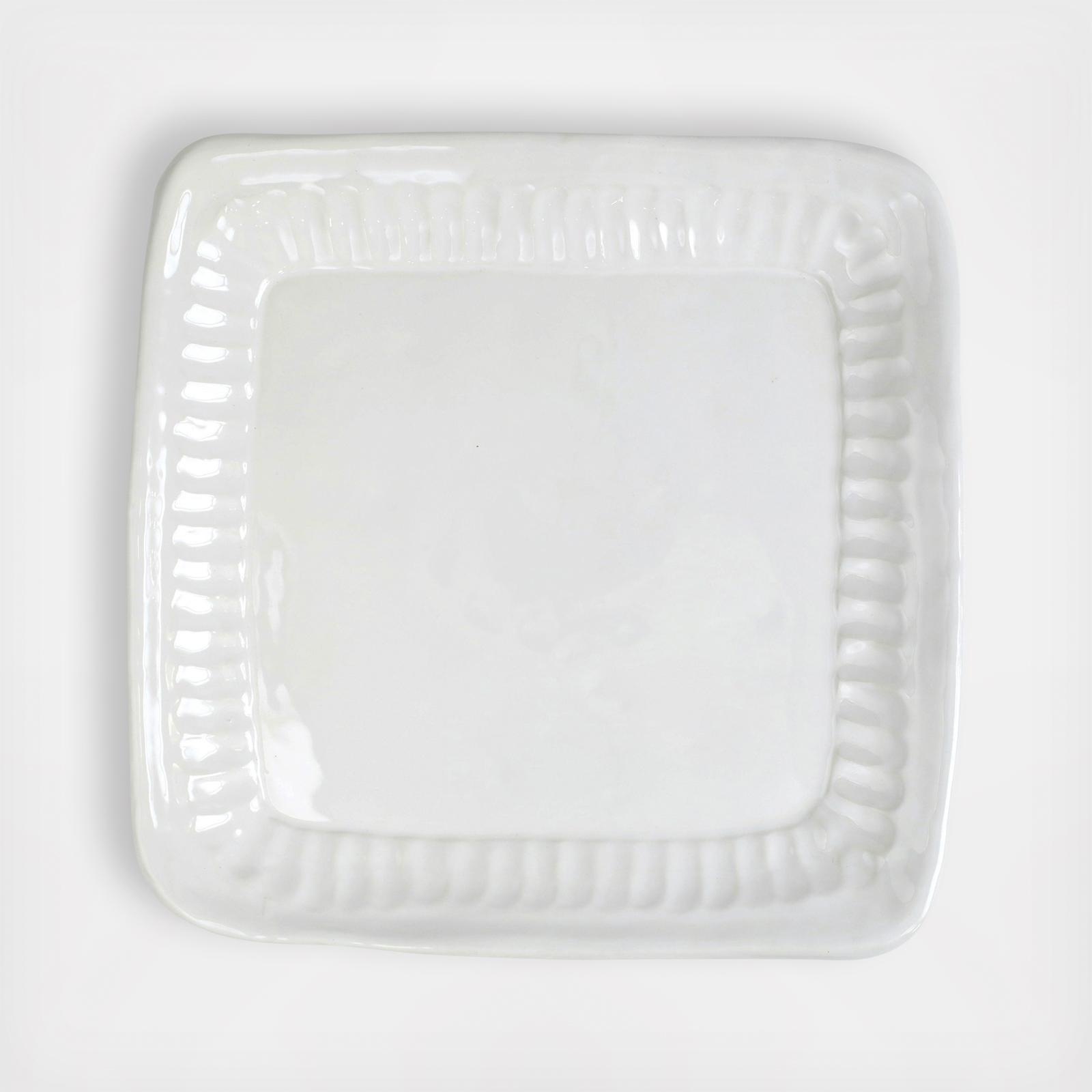Pietra Serena, meaning serene stone, represents the simplistic beauty of the handpressed design found on the Pietra Serena Square Platter.