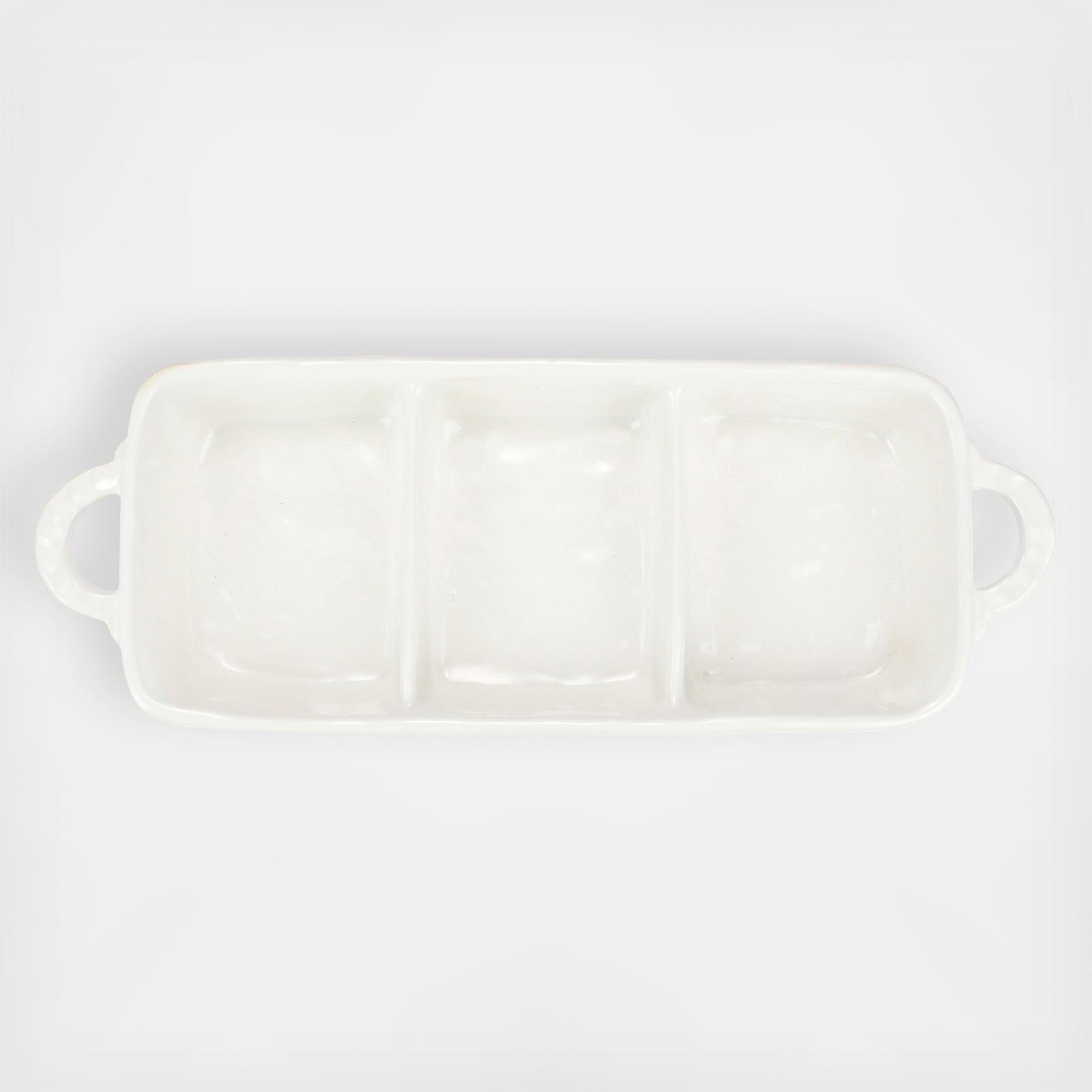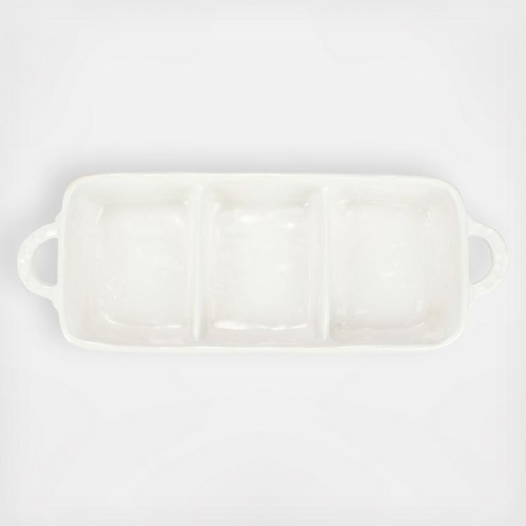 Characterized by handpressed edges, Pietra Serena pays tribute to the architectural details of Florence, Italy during the Renaissance. The Pietra Serena Three-Part Server features a handpressed design around its edges and is a simply beautiful entertaining piece.