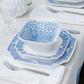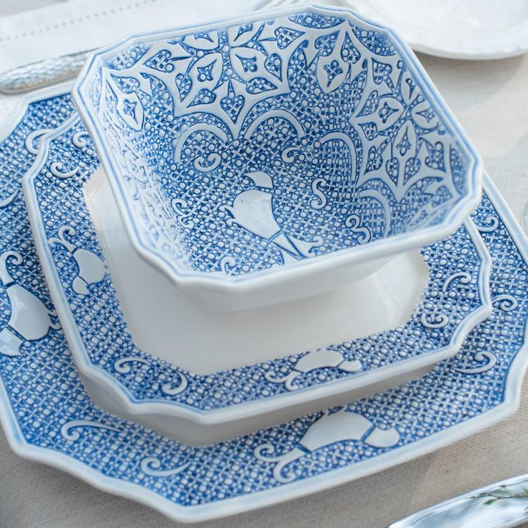 Inspired by the handpainted tiles and textiles of Italy, the Uccello Blu Salad Plate pays homage to the country’s long tradition of intricate, geometric designs. Italian artisans bring a fresh element to this collection with crisp, graceful edges and the plucky, good luck bird hidden in the design.