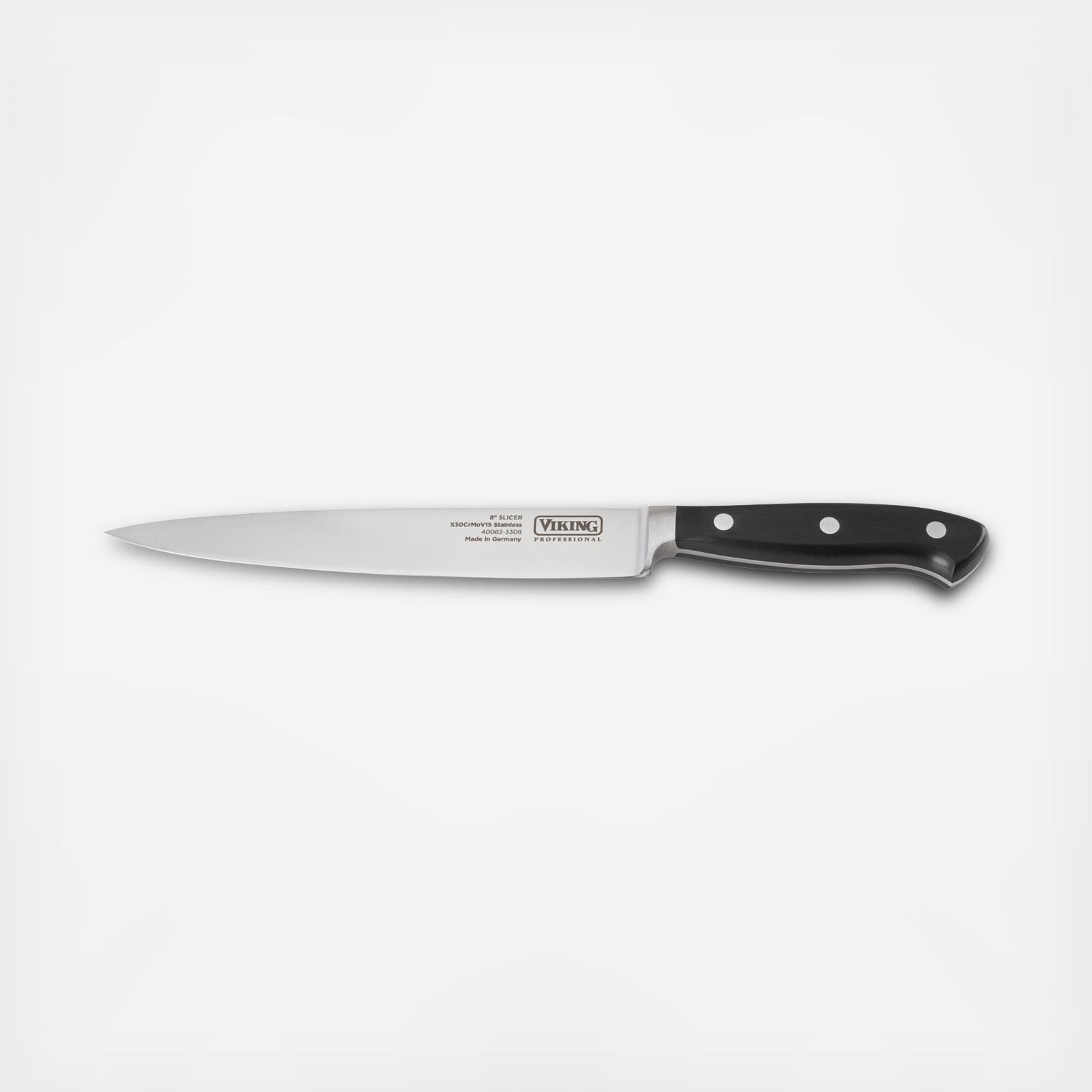 Designed in Germany for both home and professional use, the Professional Cutlery line delivers optimum cutting performance thanks to the exceptional balance between the fully-forged, high-alloy stainless steel blade and comfortable ergonomic handle. The Professional 8" Carving Knife is perfect for carving thin uniform slices of cooked poultry while also suitable to slice large roasts of meat or filleting fish.