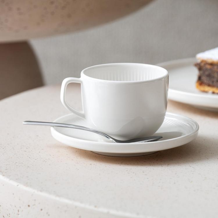 Minimalism is more than a trend, it's a lifestyle. The brand new Afina collection perfectly captures this concept. Designed by Industrial Designer Christian Haas, the Afina collection adds a touch of relaxed elegance to everyday life. The Sophisticated lines combine with a delicate relief on brilliant white premium porcelain, a perfect example of understated design. The shape with its raised rim creates an exciting sihouette that shows the modern coupe shape in a whole new light. The unique placement of the base creates a shadow effect that makes the porcelain almost appear to float. Afina is a complete collection ideal for special occasions or everyday luxury.