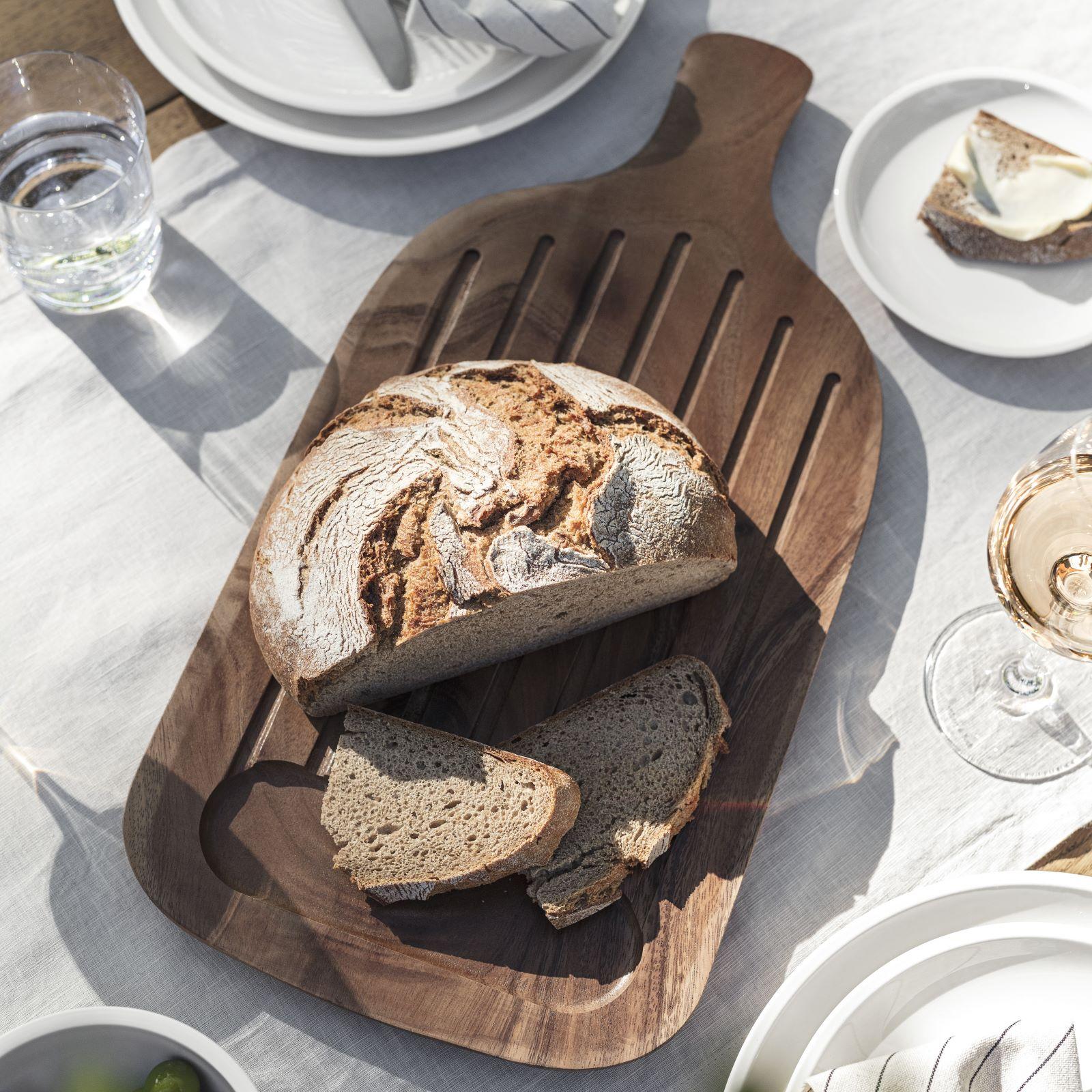 With a design inspired by hand-thrown artisan pottery, the Artesano line brings nature to the table with accents of natural materials to complement the premium porcelain. This wooden chopping board has raised slats to let juices drain and keep food fresh, so not only is it beautiful, but it's practical too.