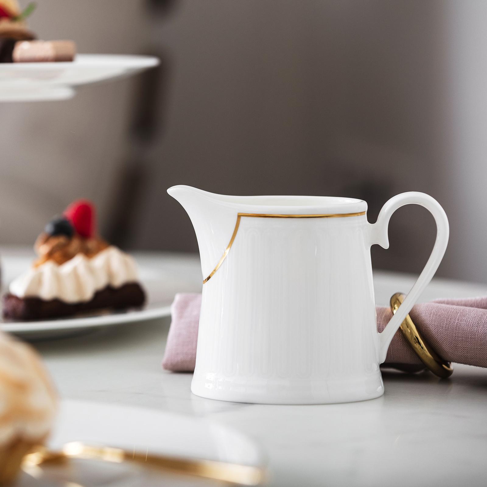 In the new collection Château Septfontaines Villeroy & Boch combines design aspects from its own history with high-end materials and the latest production techniques to create exquisite tableware. This has resulted in the creation of an exciting interplay of matt and glossy surfaces. The 20 karat gold rim is dishwasher safe thanks to a new innovative technology. The subtle play of matt and gloss give this setting a greaceful and elegant appearance. Perfect for the lovers of classic find dining.